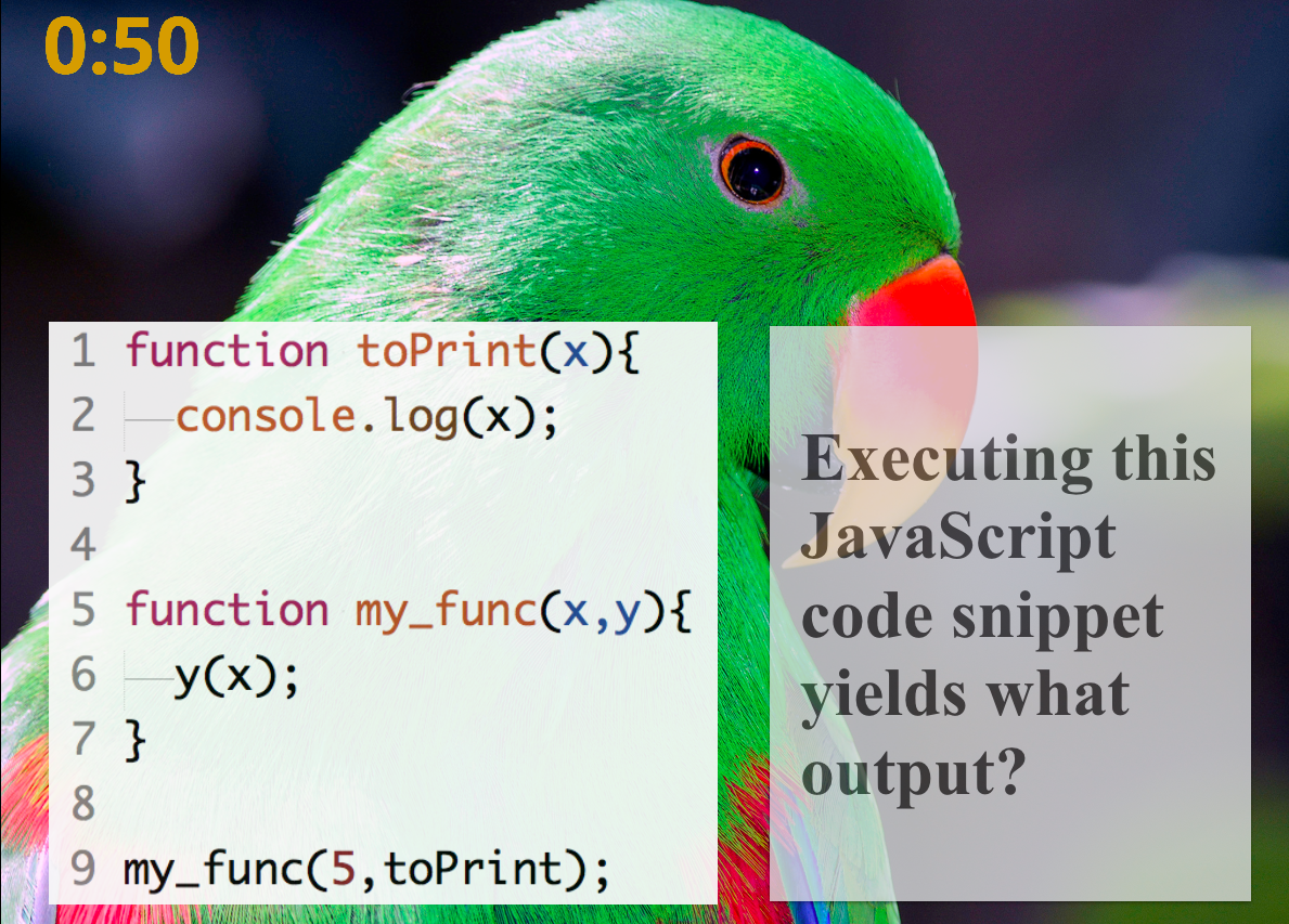 The setup for the students is easy: at the beginning of the lecture I point them to a URL they open in the browser and that’s it, they see the lecture slides and the embedded questions as the lecture progresses.