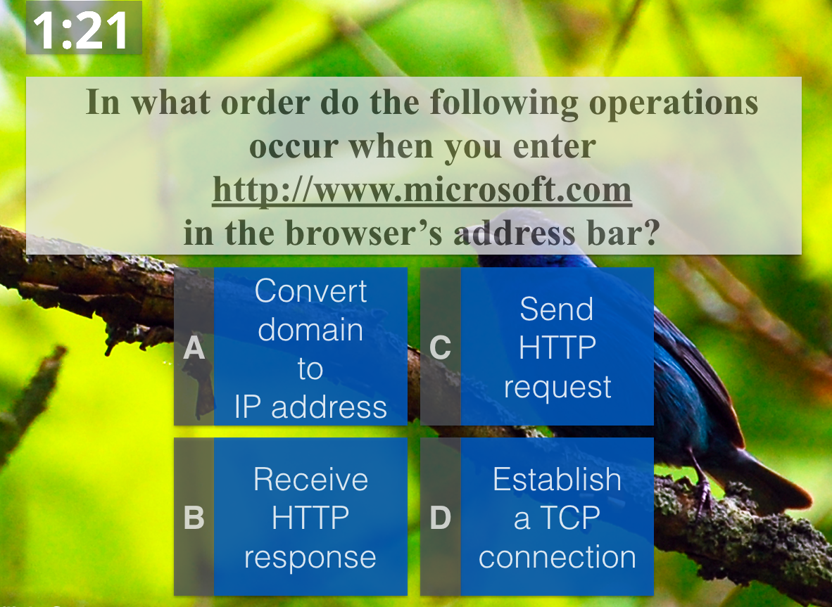 What made it so attractive to me is the opportunity to present complex question types in class to hundreds of students and to receive in realtime feedback about the students’ focus and their performance on the task. Here are three of those complex question types: